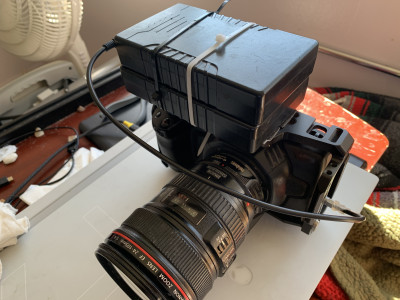 Great 4K camera that shoots RAW footage, has a built in microphone preamp. Comes with Smallrig cage and some large battery packs strapped on top, and the power cable which has been fortified with some hot glue. Camera has been updated to the most recent firmware from Blackmagic.