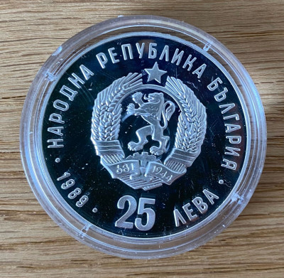 🇧🇬 BULGARIA - Silver 25 Leva 1989 Olympics, Ice Skating Proof 🇧🇬