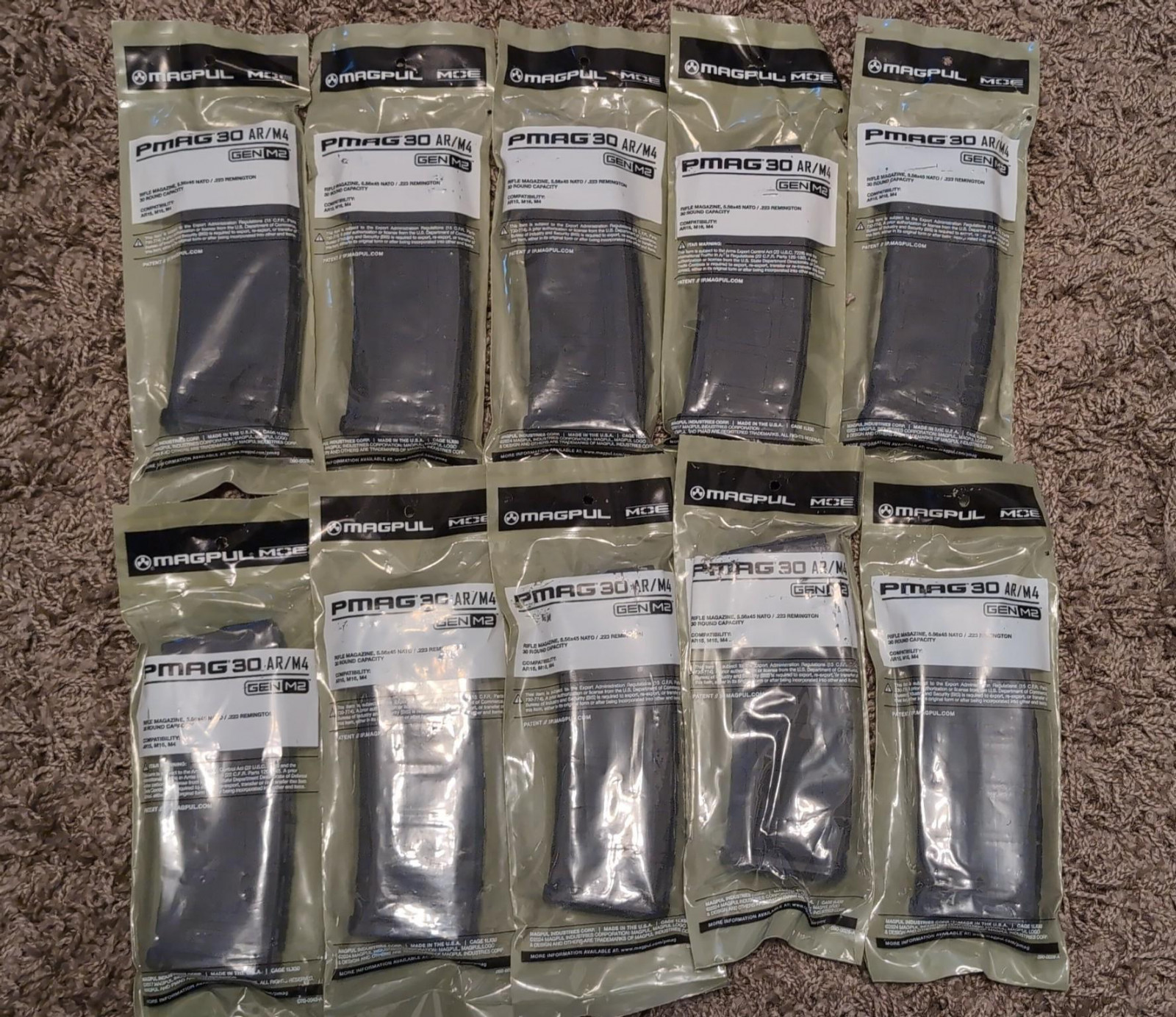 Ten brand new in packaging PMAGs from Magpul