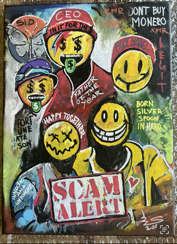 "SCAM ALERT" is a piece from a series of 10 artworks released by SID in Jan 2024.