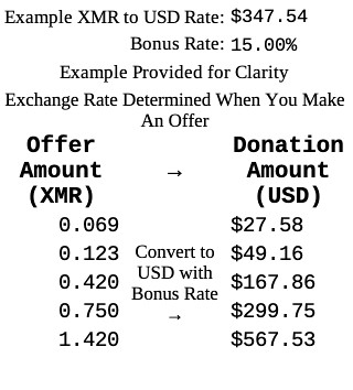 A: Donate to charity with Monero (through me)! Make an offer for 0.069 to 1.420 XMR and include in the order what charity you wish to donate to and I'll do the rest! I also throw an extra 15% USD into the donation. See attached example image above.