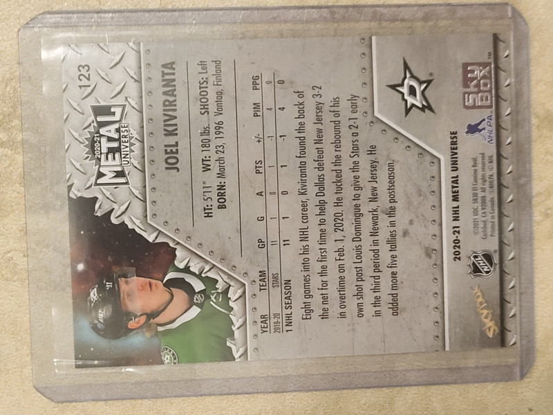 2020-21 SkyBox Metal Universe Spectrum Blue Joel Kiviranta Card #123. Ships Plain White Envelope (PWE).