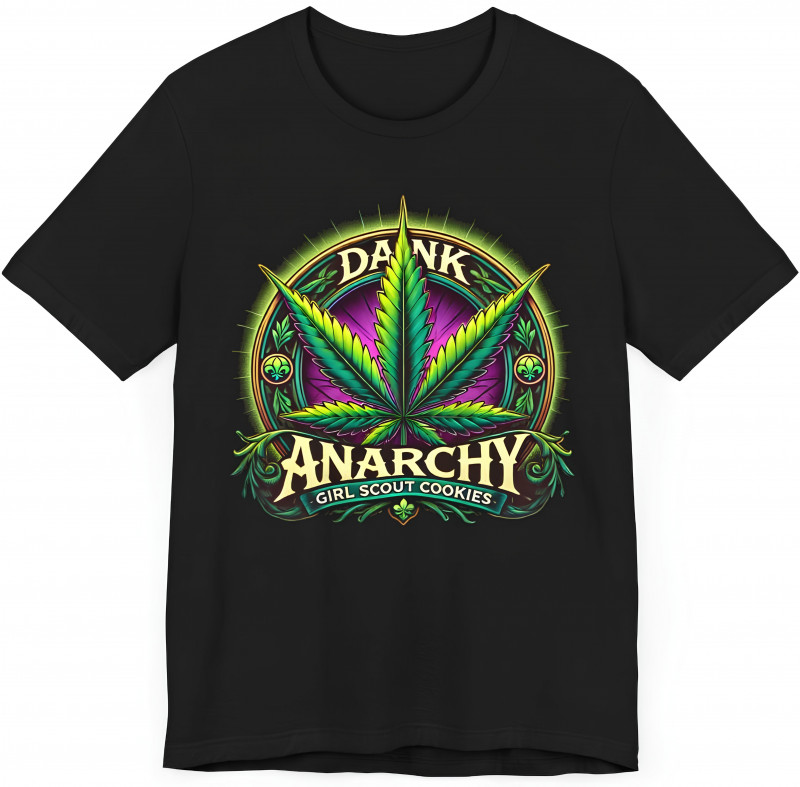Celebrate the iconic Girl Scout Cookies strain with this exclusive Dank Anarchy tee! Featuring a bold gothic design and vibrant colors that honor the legendary cannabis variety, this shirt is perfect for connoisseurs and enthusiasts alike. The detailed artwork highlights the rich, earthy tones of GSC, infused with a touch of rebellious Dank Anarchy spirit.