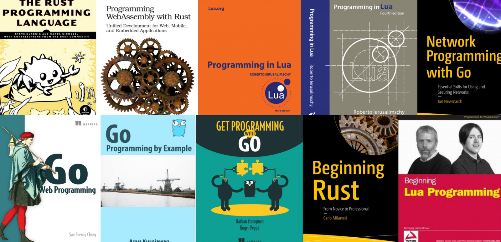 Programming ebooks, Lua, Go lang, Rust, WASM webassembly E-books