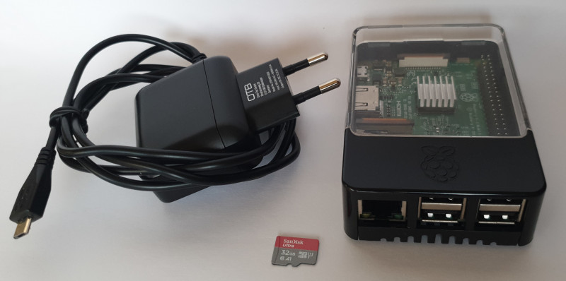 - 32 GB micro SD card (with raspiOS/debian12 bookworm arm64 pre-installed)