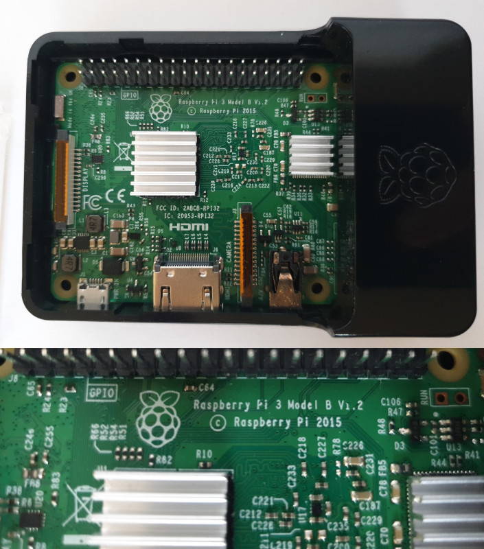 - Raspberry Pi 3 Model B v1.2 in black casing