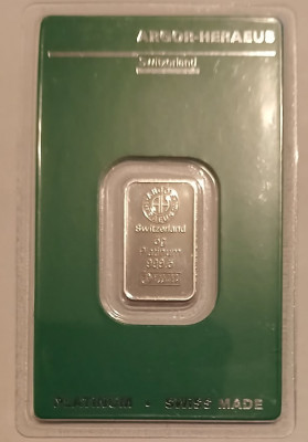 PLATINUM 5 Gram Bar Argor-Heraeus 999.5 New Certified in Assay Unopened