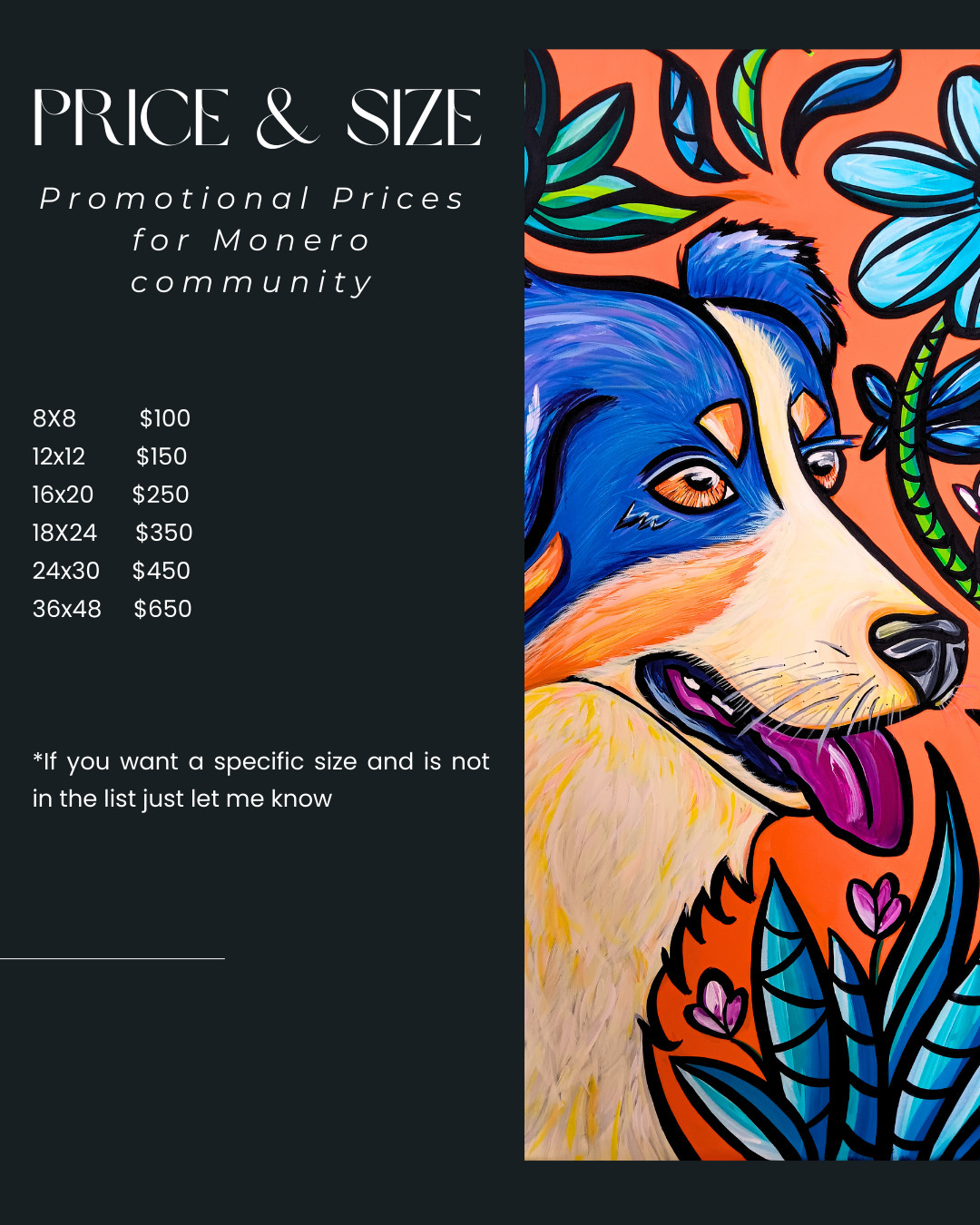 I'm Tamara, from Spain, living now in California. I'm traveling around with my dog, Lobo, my best companion during all my trips. He is one of the most important reasons I started making pet portraits. Since I started painting Lobo years ago, little by little, I kept painting pet portraits for many people around the country. I'm new to the Monero community, and I'm looking forward to share my art with you guys.