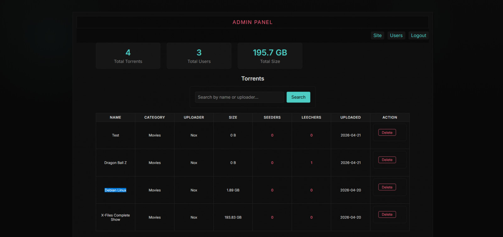 On the admin side, a dedicated admin panel gives you full control without ever touching the database manually. The user manager lets you ban, warn, promote, or demote accounts with a few clicks. The torrent manager handles approvals, rejections, edits, and deletions. A built-in moderation system tracks reported content and user activity logs so nothing slips through unnoticed. Site-wide settings, announcements, and configuration are all manageable from the dashboard.