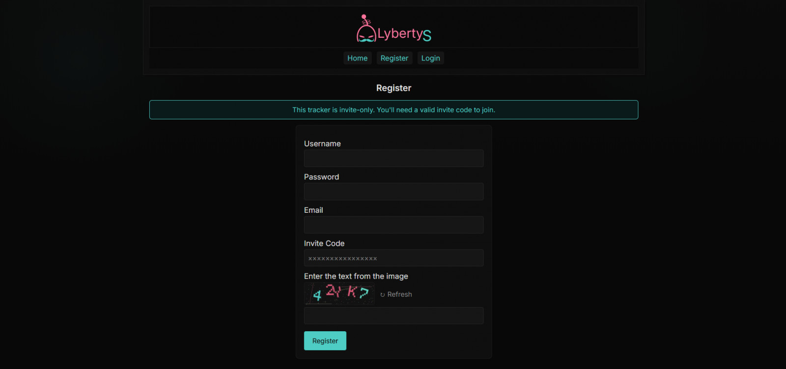 The platform comes with a clean user-facing interface where members have personal profile pages with stats, ratio tracking, and activity history. Access to the community is controlled through an invite system — only existing members can bring in new users, keeping the tracker truly private. Registration and login are protected with CAPTCHA to block bots and automated abuse.