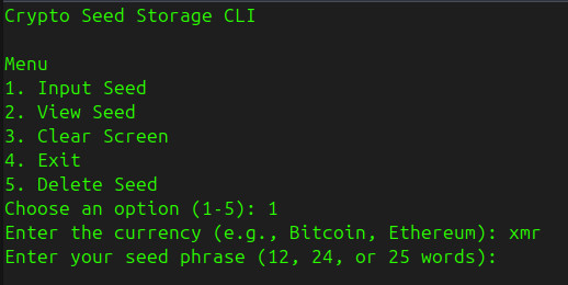 This lightweight Python script lets you securely store your crypto seed phrases (12, 24, or 25 words) in plain text files on your local machine. Designed for crypto users who value transparency and control, it provides a command line menu to input seeds, label them by currency, view saved seeds, and delete files when needed.