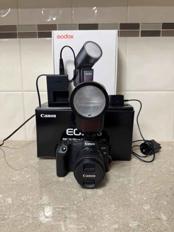 I am selling my Canon EOS R8 full-frame mirrorless kit with RF 24-50 mm lens, Godox V1 (Canon) round head flash, and Manfrotto Pixi mini tripod.