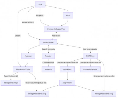 1. The user adds content to their Radarr / Sonarr, or Emby/Jellyfin