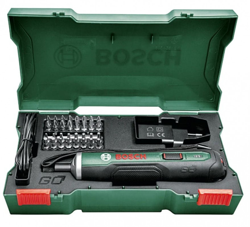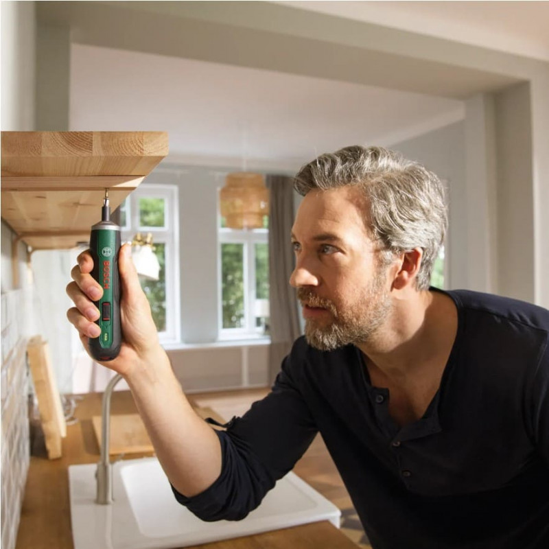The Bosch cordless screwdriver PushDrive is a compact and handy 3.6-volt screwdriver. Thanks to the Push&Go function, the PushDrive automatically starts screwing after light pressure on the screw. The PushDrive has a neutral position, which offers the possibility to screw manually. In addition, the machine also has a torque setting, which makes the machine even easier to use. The PushDrive cordless screwdriver is very comfortable to hold and comes standard in a robust case with a 32-piece bit set and a Micro-USB charger.