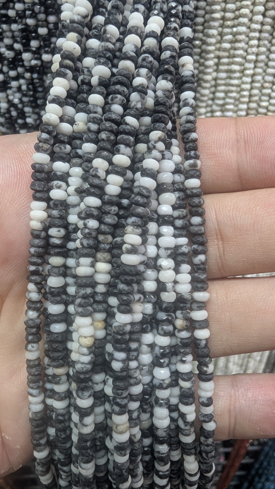 Tags: 4mm, Wholesale, Faceted, Matte, Zebra, Jasper, Heishi, Rondelle, Disc, Long, Strand