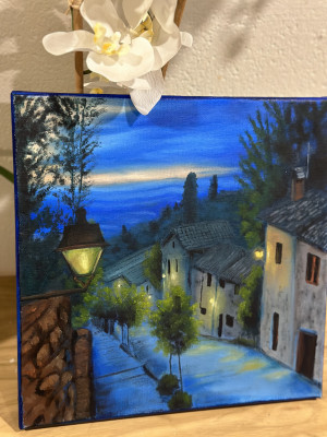 "Blue Hour," hand-painted, 12 x 12 inches, oil painting.