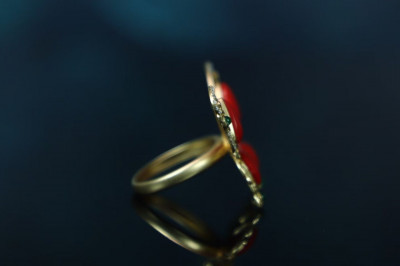 Red Agate 18k Gold Inlaid Butterfly Jade Ring