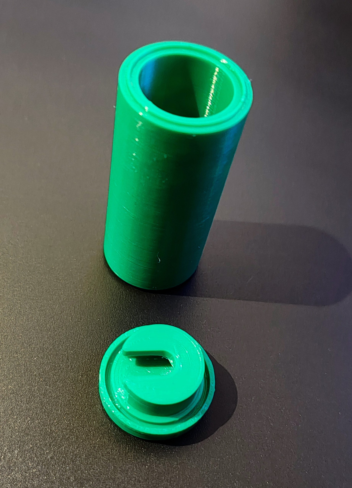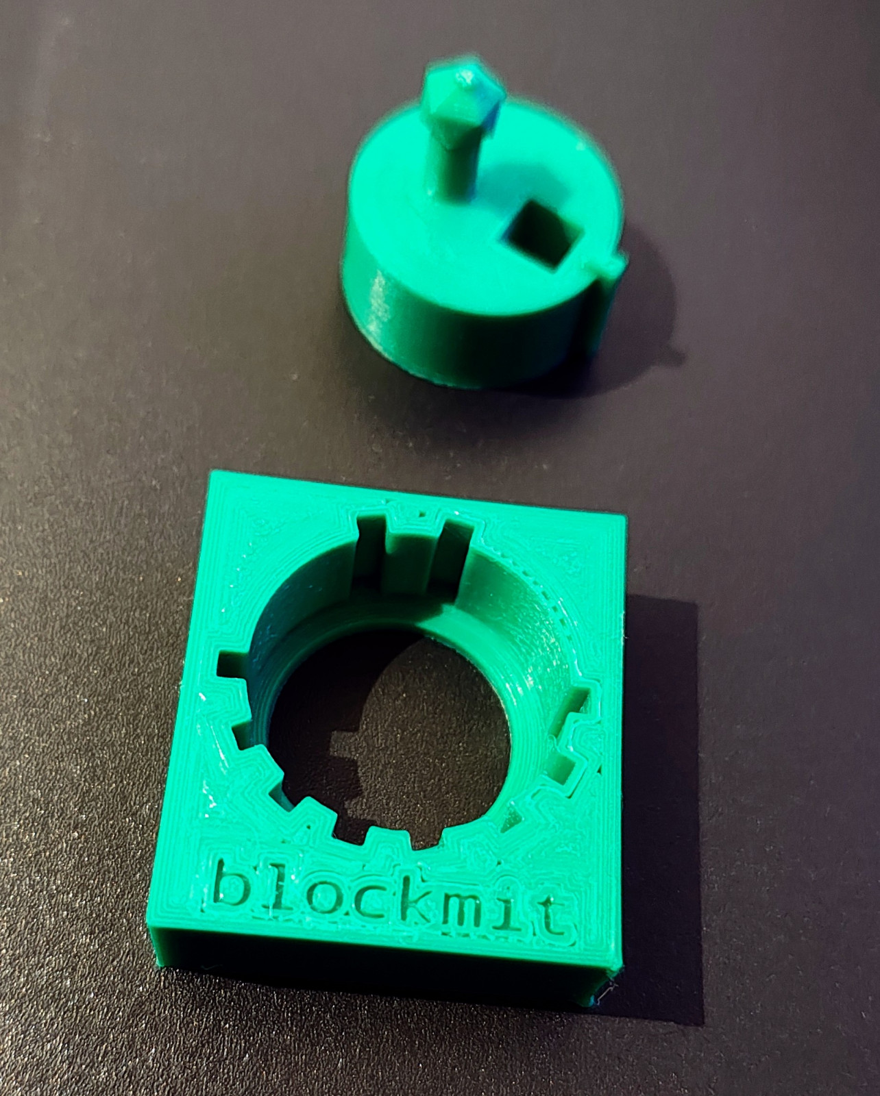 3D printed in high quality PETG Blockmit mold and storage tube for storing your crypto wallet seed words on stainless steel washers, as per this guide: https://blockmit.com/english/guides/diy/make-cold-wallet-washers/.