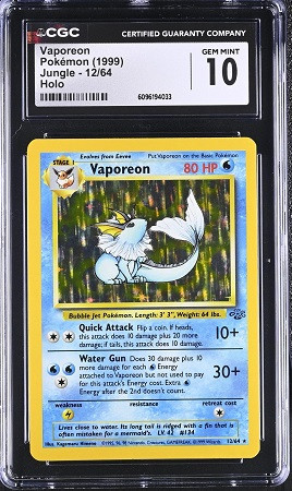 CGC 10 GEM MINT Vaporeon 1999 Jungle 12/64 Holo Pokemon Card