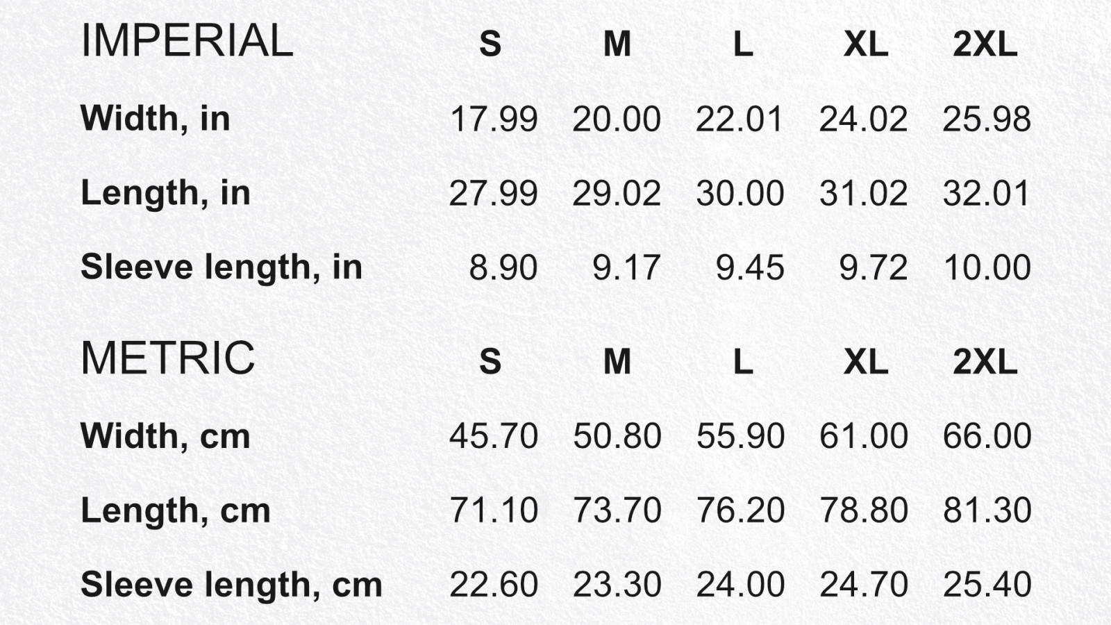 S - M - L - XL - 2XL