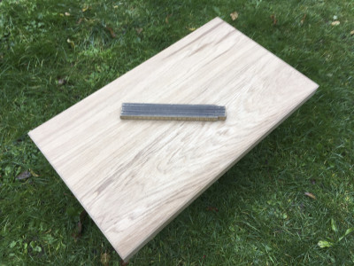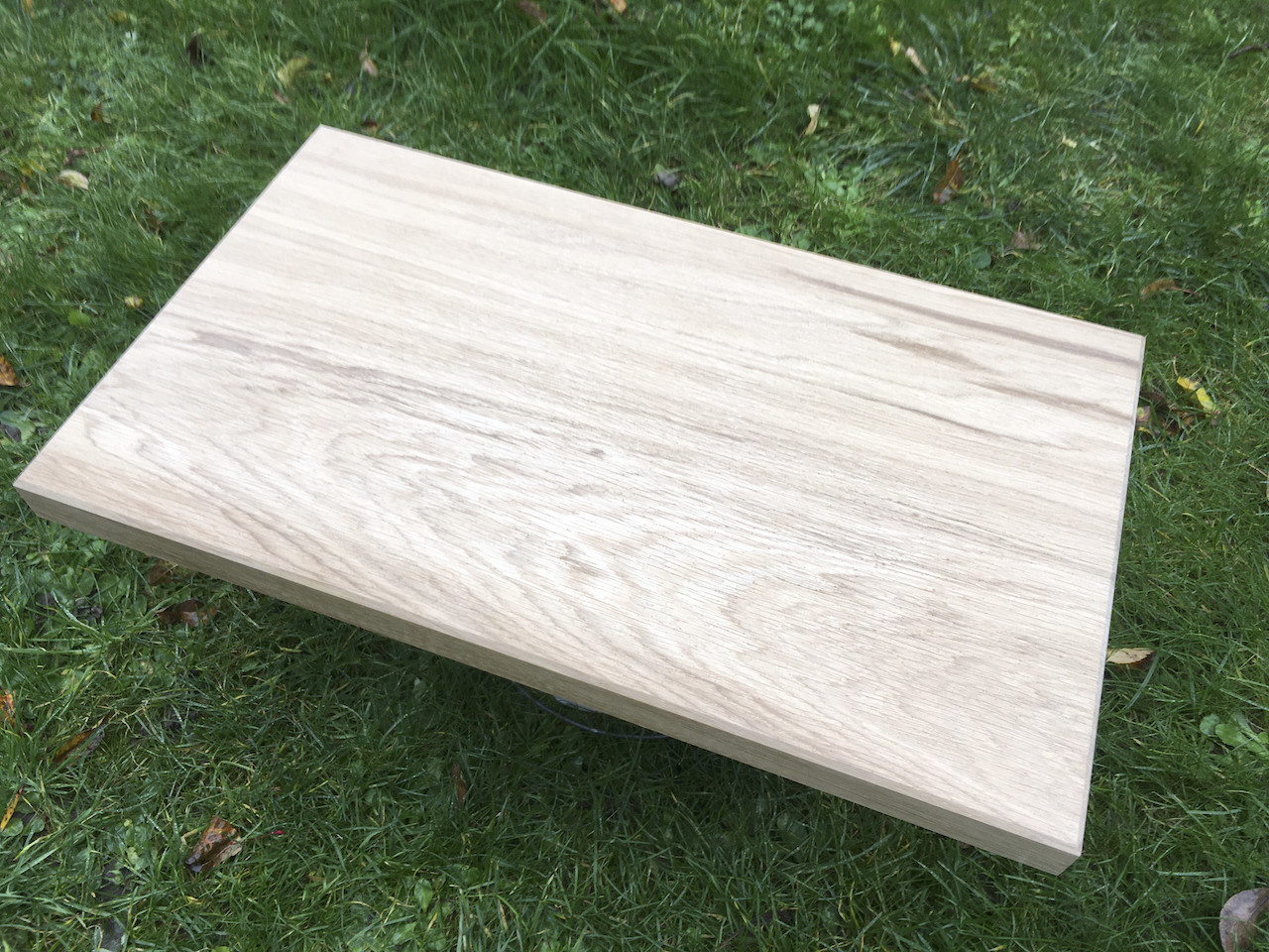 Dieses Schneidebretter aus massivem Eichenholz habe ich unter Anleitung eines Tischlermeisters in seiner Werkstatt hergestellt.