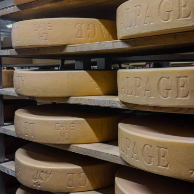 Gruyere Wheel Item Produced since 1115 in the area surrounding the little village of Gruyère in Western Switzerland, this much-loved cheese is still made in local dairies according to the original traditional recipe. Each wheel of Gruyère AOP bears a casein marking with the number of the wheel and of the cheese dairy, as well as the manufacturing date.