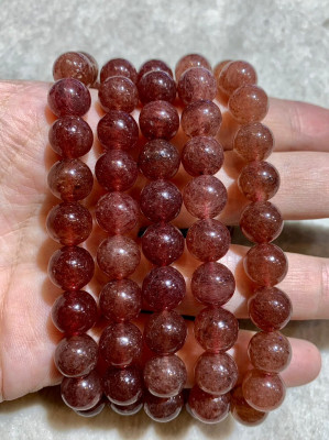 AAA Quality Madagascar Strawberry Quartz Genuine Gemstone Bracelet