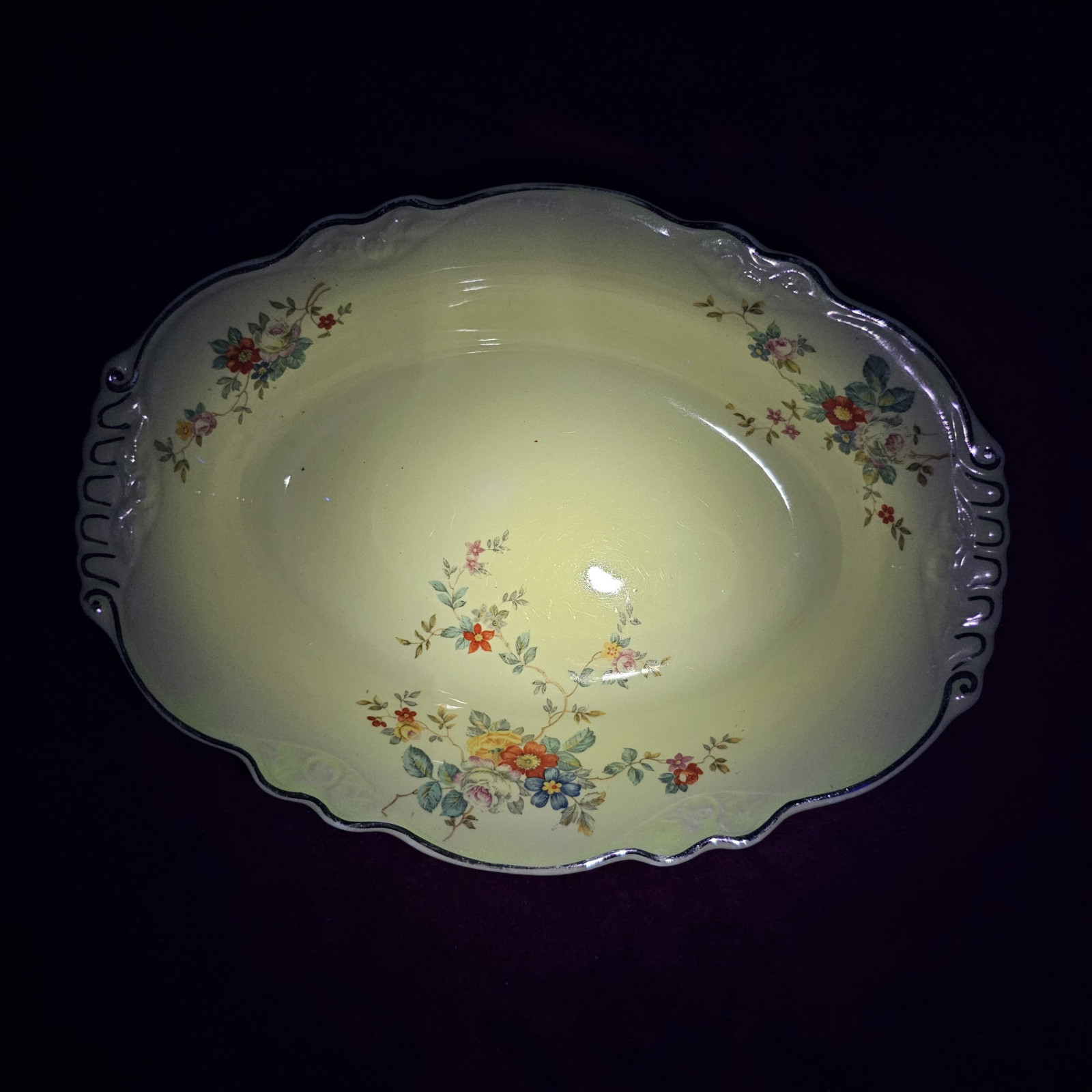 Uranium Glazed Vintage Homer Laughlin Virginia Rose Bowl