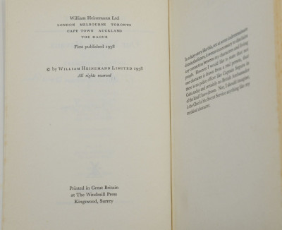 First edition, first impression. Signed by Graham Greene, inscribed "For [name crossed out] David Posner from Graham Greene." Greene did this on a number of copies of different books inscribed to Posner for reasons unknown. [vi], 273 pp.