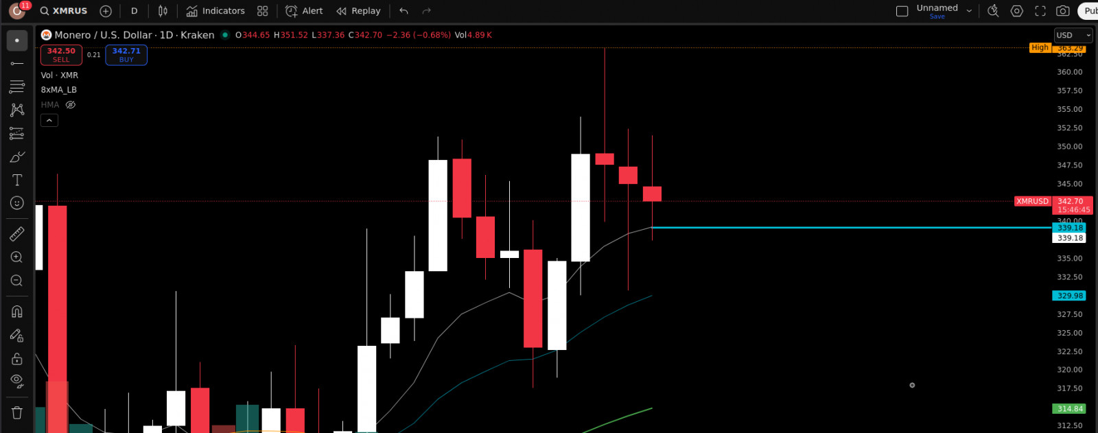 At the price of 9 EMA on daily for $XMR + 2% above the market (his fee).