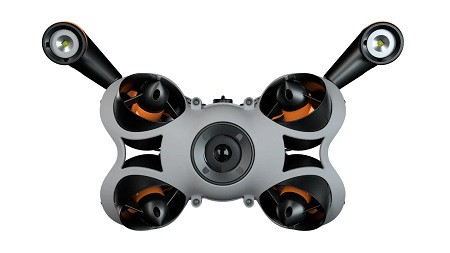 It is an industrial-grade underwater remote operated vehicle (ROV) designed for government and enterprise users. It is equipped with eight vectored thrusters, allowing 360-degree omnidirectional movements. The ROV can navigate at a maximum speed of 3 knots, dive to 200 meters deepwater, and move around a maximum horizontal radius of 400 meters.