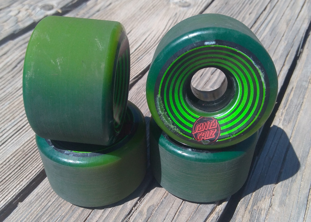 Santa Cruz Dot wheels 60mm 78a green used longboard cruiser two tone