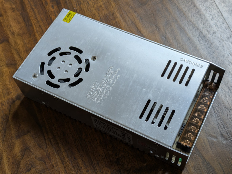 Lightly used, works with either 100-120VAC or 200-260VAC as input (there's a switch on the side). I used this to drive a *LOT* of individually addressable LEDs, specifically WS2812B strips, for a light show. No visible wear.