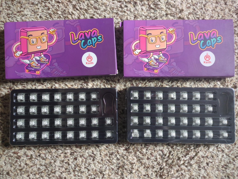 Kailh Box White clicky keyboard switches from Lava Caps.