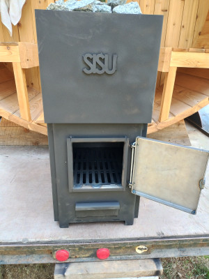 Professionally manufactured in Grand Forks BC, this is a high efficiency wood burning sauna stove. Traditional Finnish design maximizes heat to the rocks, and your 4 person sauna is hot in 30 minutes. Shipping to be determined. Comes with spring handle, heavy duty construction ensures long life. This a brand new stove, never used. Orders of multiple stoves receive 8% discount on entire order.