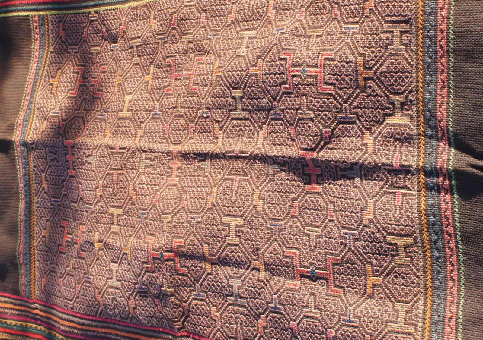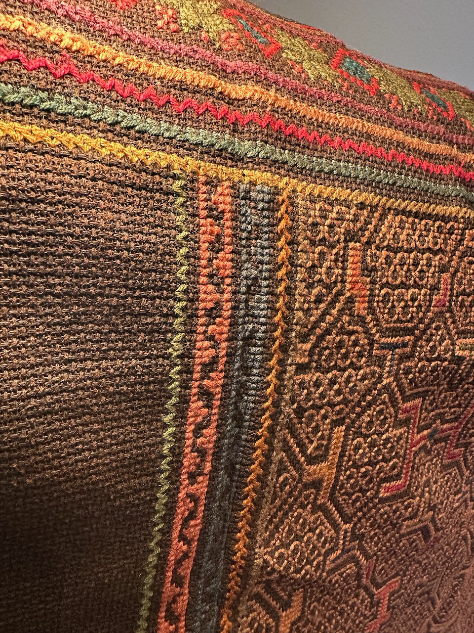 Fine embroidery, handwoven Shipibo tapestry. Real. Plant-based dyes