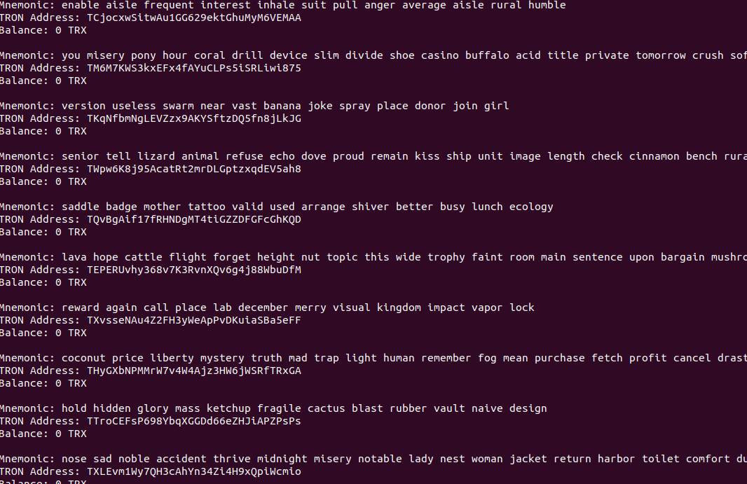 Tron TRX recovery/checker tool, recover lost wallet, hunt forgotten TRX wallets