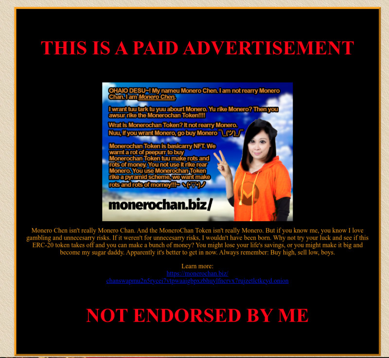 The price of this is free. However, I would prefer if you paid XMR for an ad (for a generous amount of your choosing), but it is not required. Thank you.