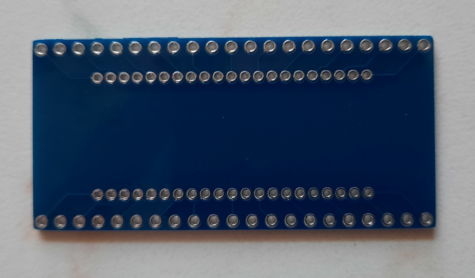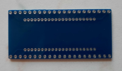 Raster of adapter: 2.54 mm (0.1 in), distance of hole rows 22.86 mm (0.9 in) = 9 breadboard holes