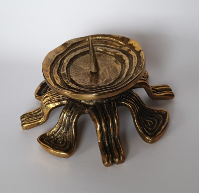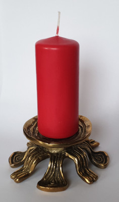 A hand-crafted candle holder made from brass, very good condition