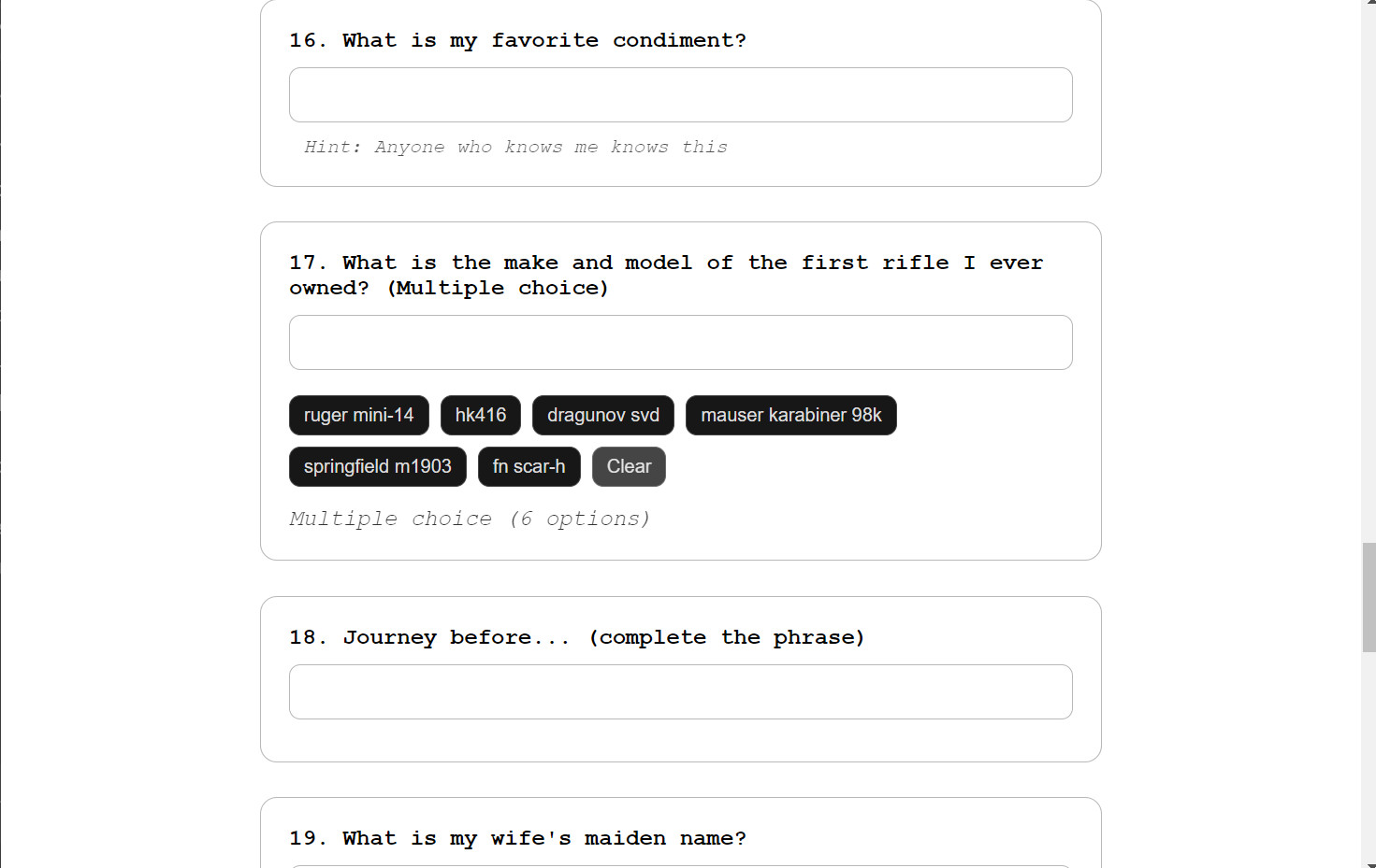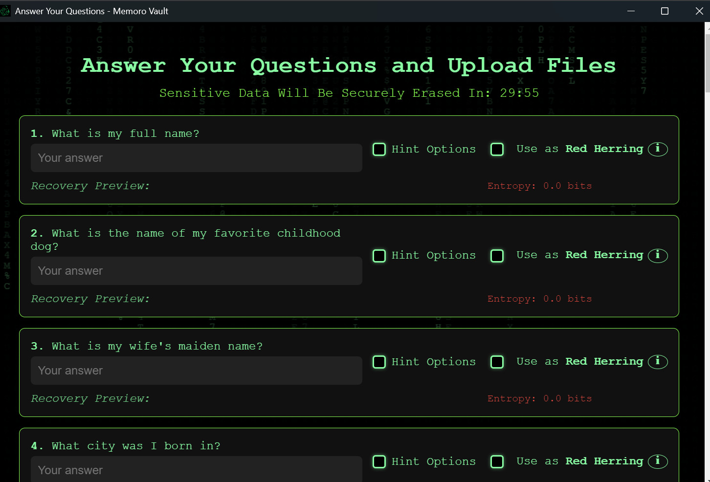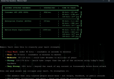 It lets you create an encrypted “time capsule” that looks like an ordinary .zip file which should be redundantly stored. You set the questions only your family would know, in an order only you can define. If something happens to you, they can unlock the vault and access your Monero — without trusting a hardware wallet company, a cloud service, or a lawyer.