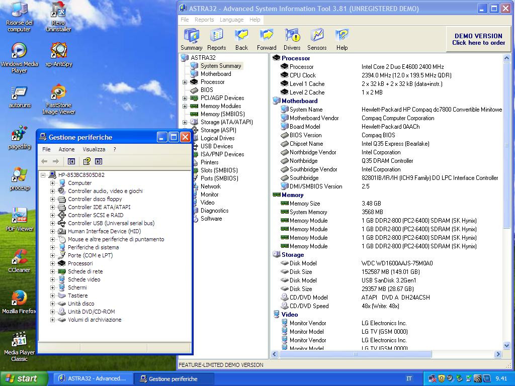 Windows XP pro PC desktop HP seriale parallela vga DVD-RW Intel Core 2 duo