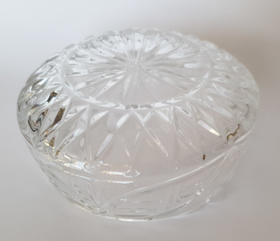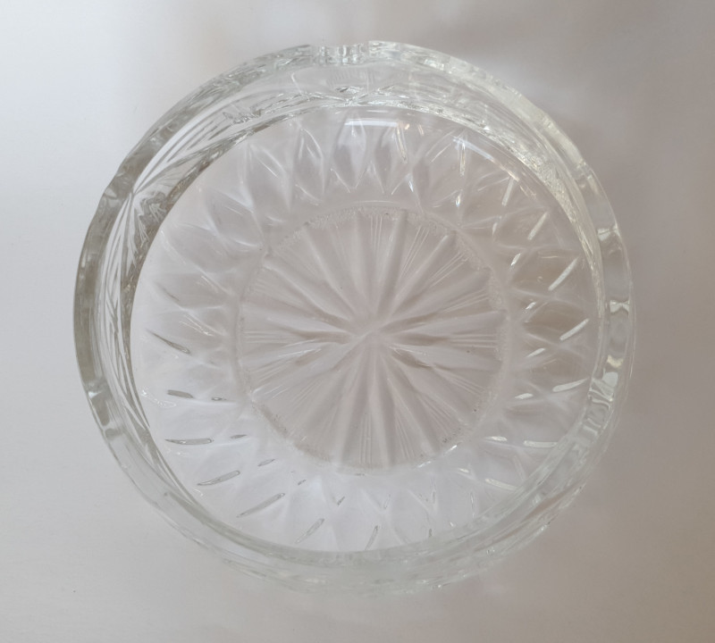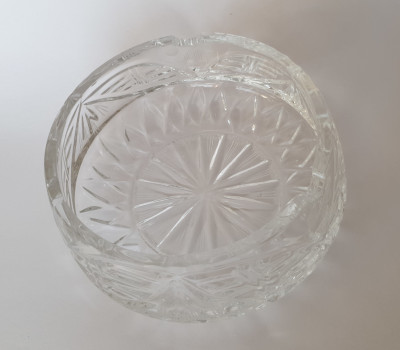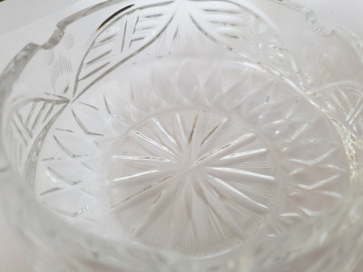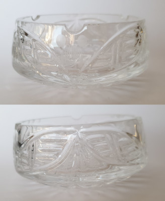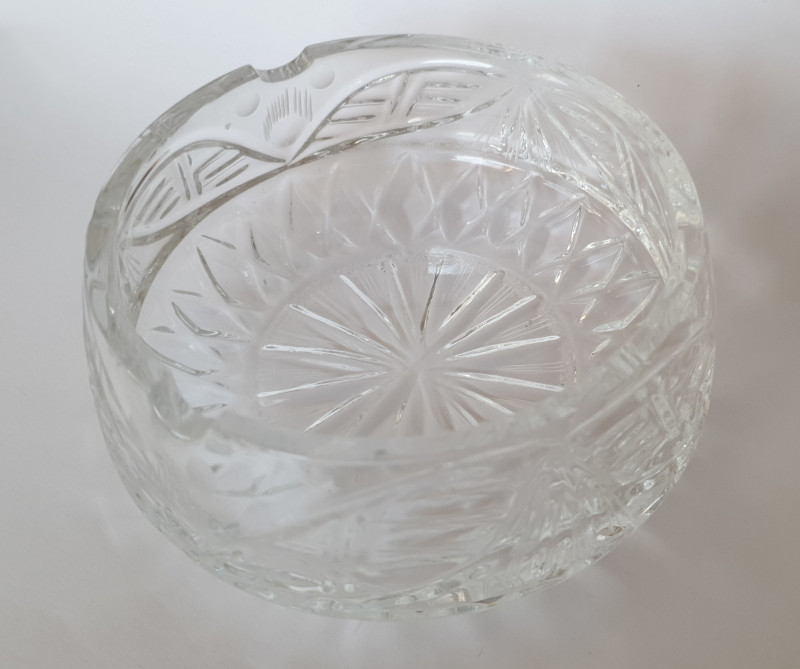 Crystal Glass Ashtray with carved patterns, good condition (some scratches on the bottom)