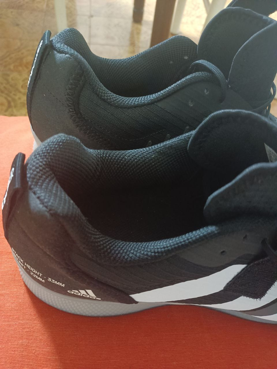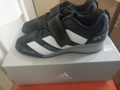 Adidas Adipower Weightlift shoes, size 10.5 US, 44 2/3 EU, 10 UK. I received them as a gift, but I've used them only once. They're in perfect condition, just like new. They're best suited for weightlifting and powerlifting, especially for squats, bench, cleans and snatches. They have 2.2 cm heels.