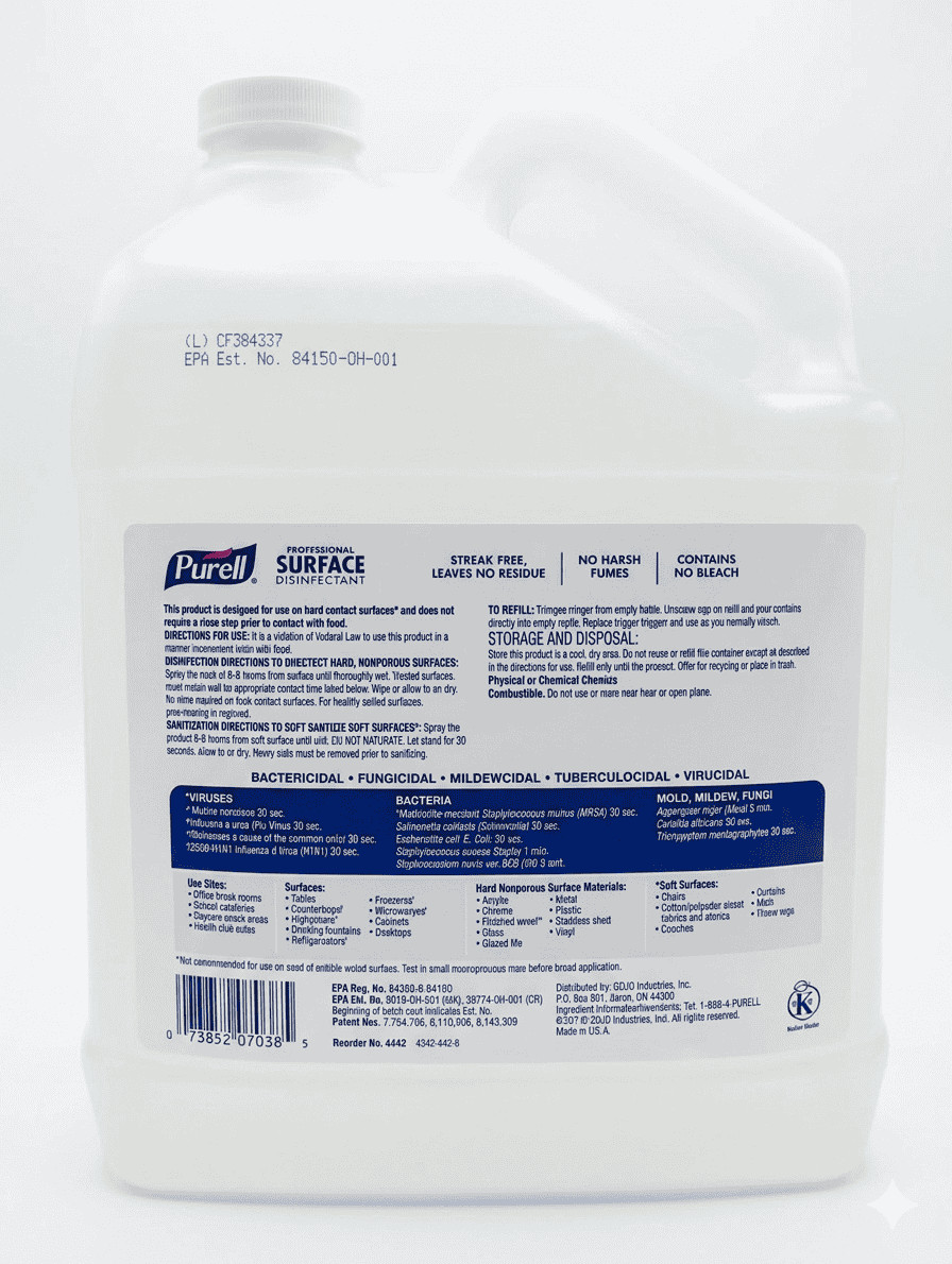 10 individual Gallons of PURELL Professional Surface Disinfectant is a powerful cleaning solution suitable for any environment. With a refreshing Fresh Citrus scent, this 1 gallon container of disinfectant is perfect for keeping surfaces clean and sanitized. Ideal for daily cleaning routines or periodic deep cleaning, this product effectively eliminates germs and bacteria, ensuring a safe and hygienic space for families, guests, and colleagues alike.
