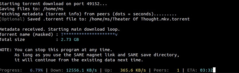 Tags: torrent, downloader, cli, python, utility, privacy, encryption, libtorrent, developer tools