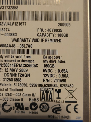 160 GB Western Digital WD1600AAJS 3.5" 7200RPM SATA Hard Drive