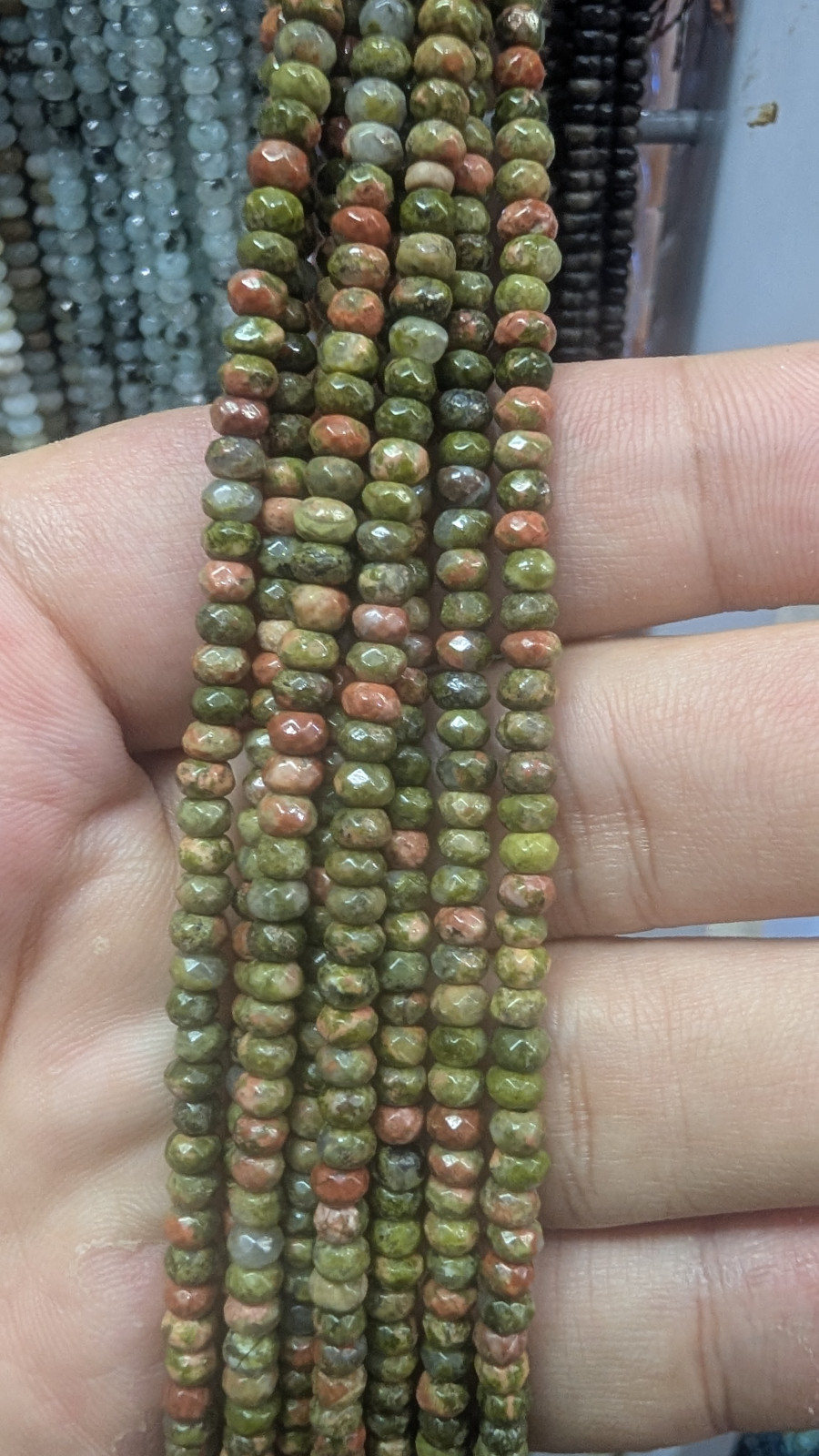 Tags: 4mm, Wholesale, Faceted, Unakite, Heishi, Rondelle, Disc, Long, Strand