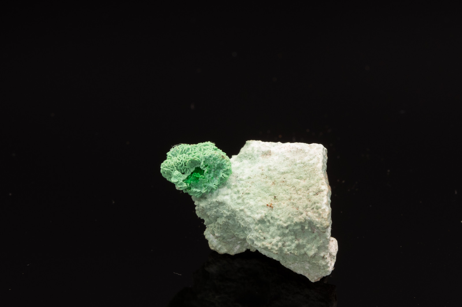 Beautiful exemplar of Conichalcite found in Greece. The uniqueness of this specimen is the detailed and intricate patterns of the crystals which look almost plant-like.