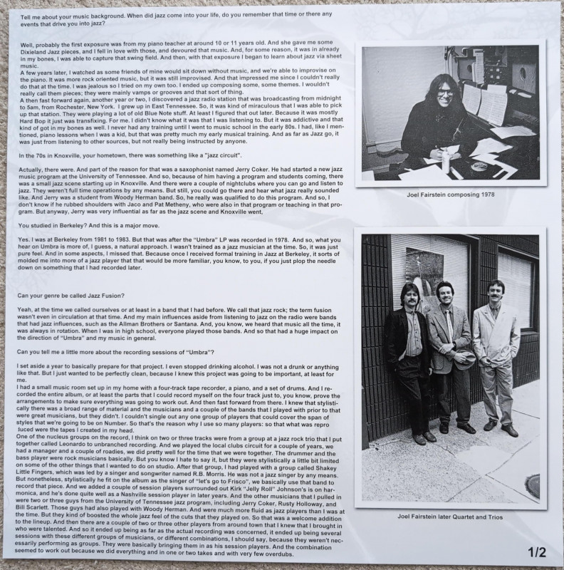 Hailing from Knoxville, Tennesee, Joel Fairstein has earned critial praise as Jazz pianist, composer, producer, and studio musician. His first album, "Umbra", an LP recorded at age 24 with eighteen sidemen has since become a sought-after collector item.